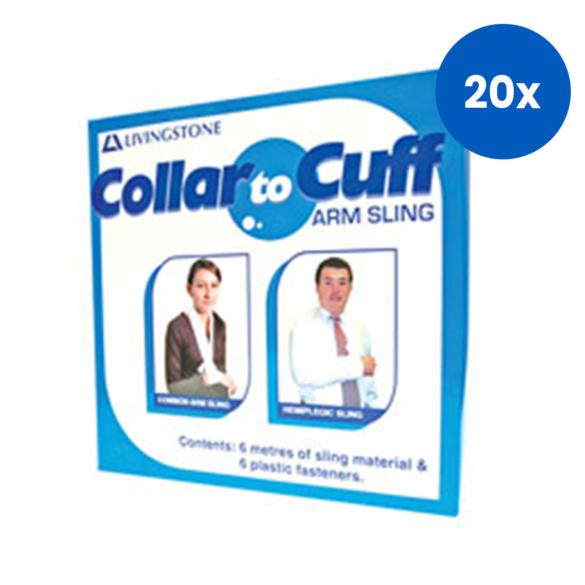 Livingstone Collar to Cuff Arm Sling with Fasteners 5 cm 10 metres/roll - White x20