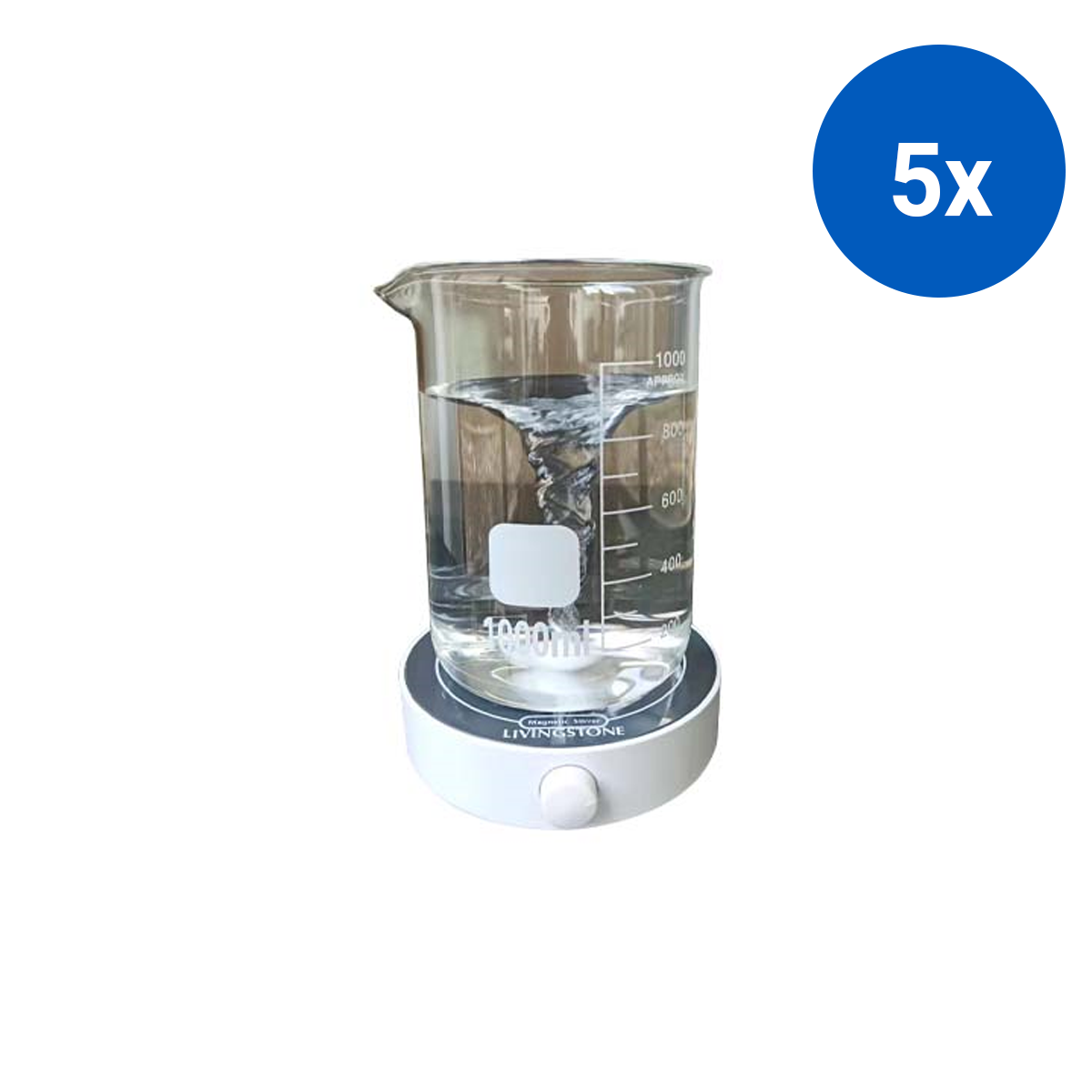Livingstone Compact Magnetic Stirrer PVC 2L Max Stirring Volume 200-1800RPM 5-40°C Temp 13.8x13.0x4.1cm 125mm Pan Size - White x5