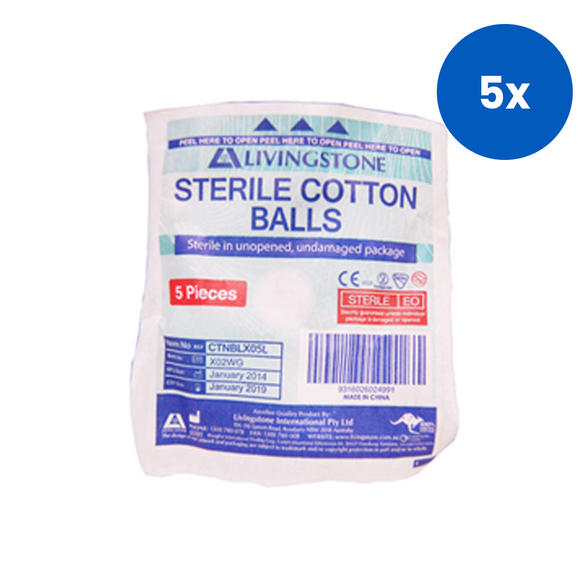 Livingstone Cotton Balls 0.6 gr Sterile 5/Pack 500 Packs/Carton - White x5