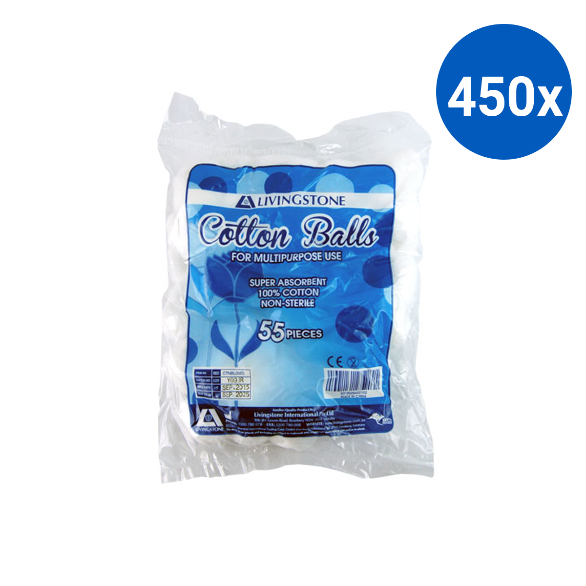 Livingstone Cotton Balls 100% Cotton 0.6g Non-Sterile 55/Bag - White x450