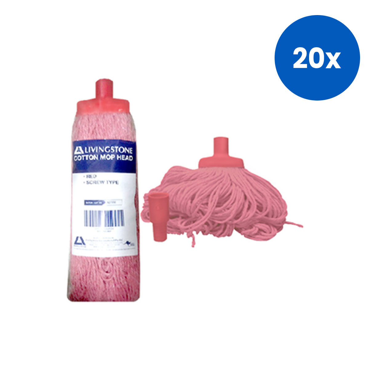 Livingstone Cotton Mop Head 650g 22mm Screw Type - Red x20
