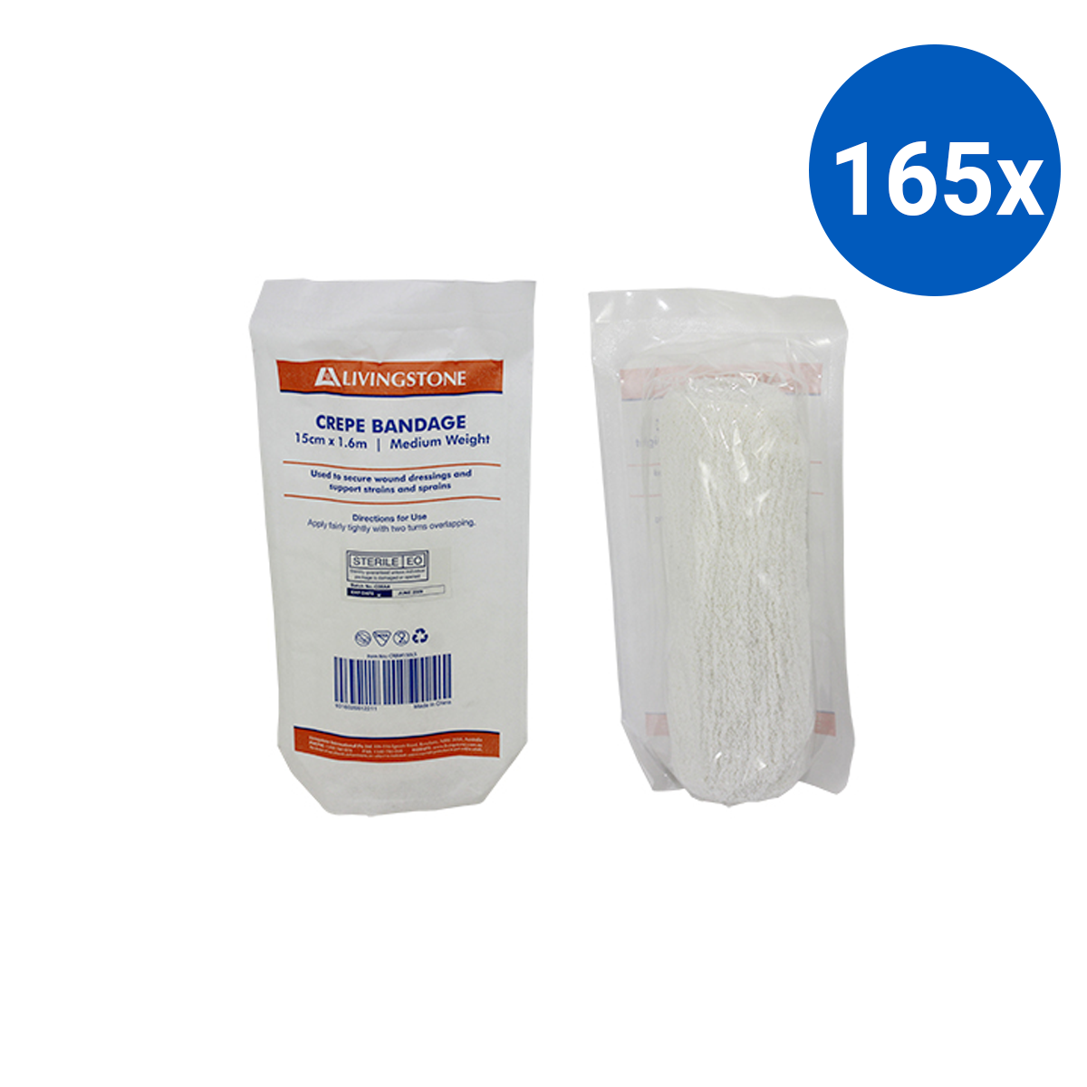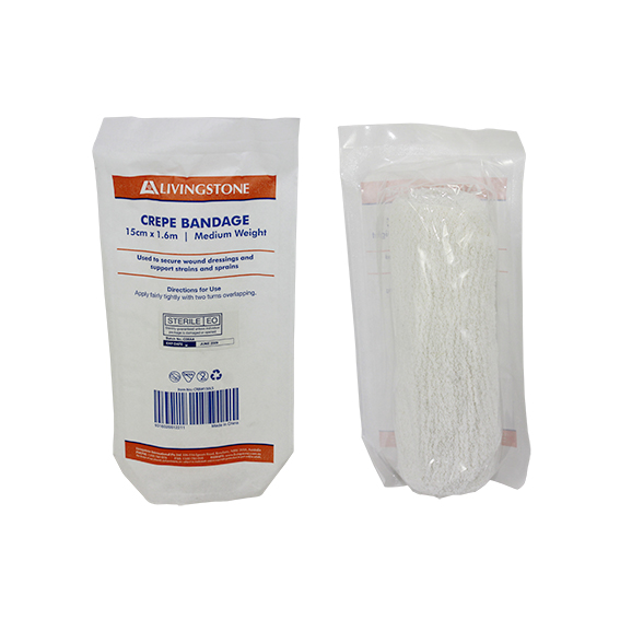 Livingstone Crepe Bandage Medium Weight 15cm x 1.6m All Cotton Sterile - White x165