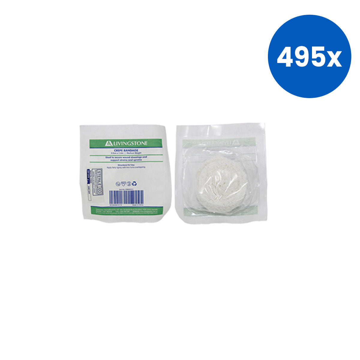 Livingstone Crepe Bandage Medium Weight 2.5cm x 1.6m All Cotton Sterile - White x495