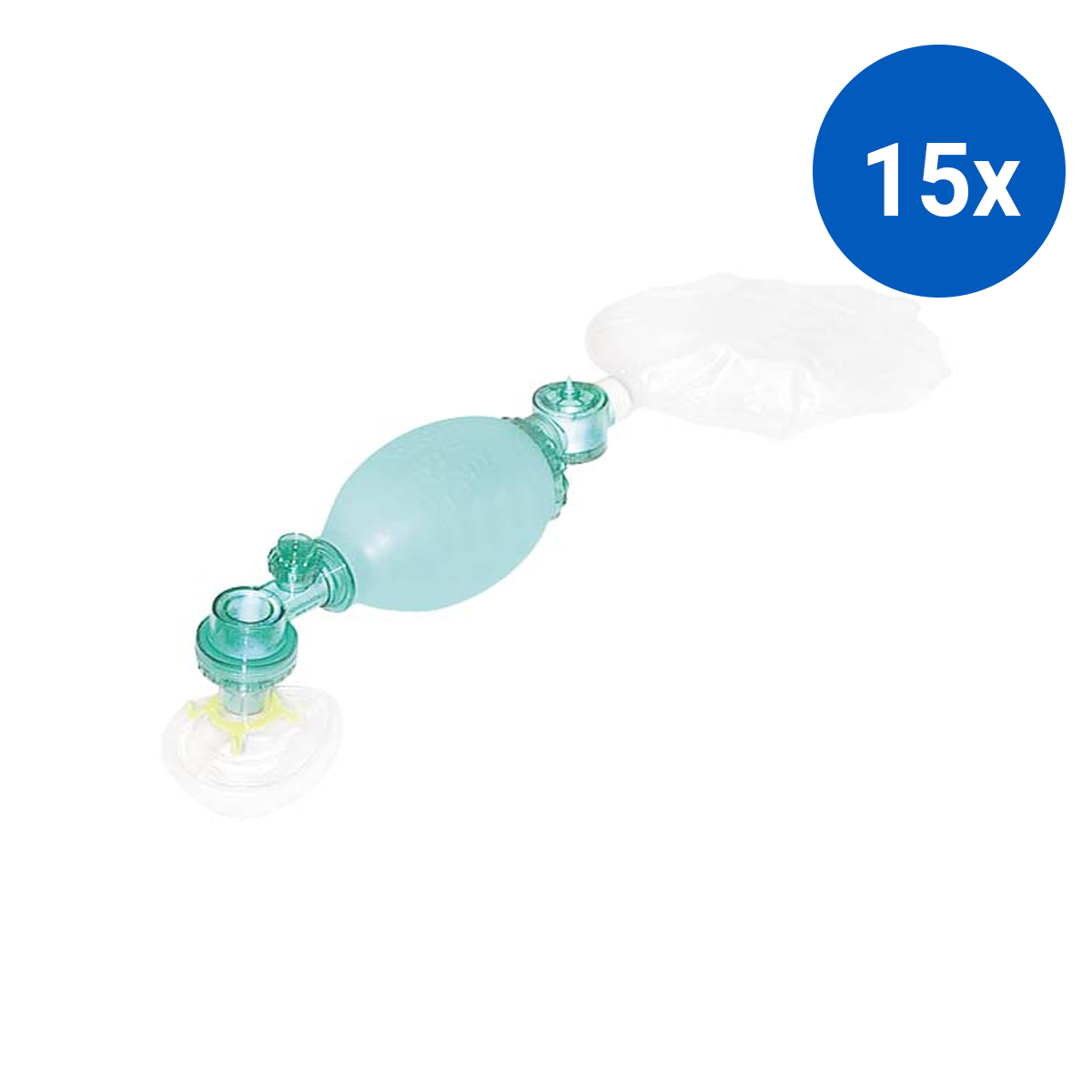 Livingstone Disposable Resuscitator with Pop-off Mask Oxygen Tubing and Reservoir Bag Child - Green x15