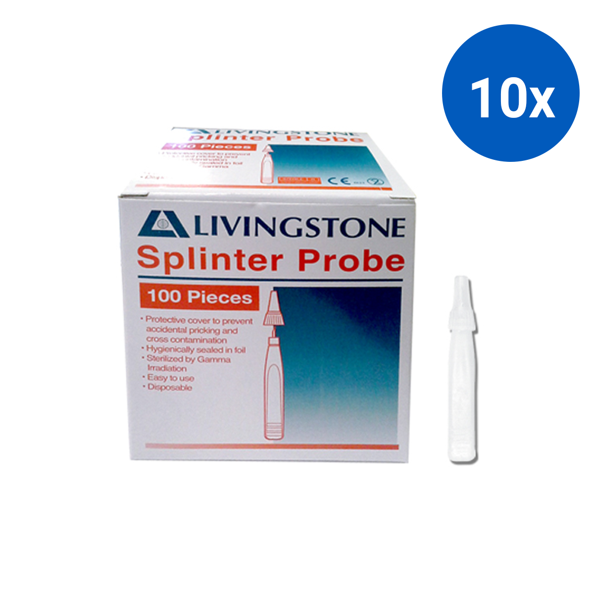 Livingstone Disposable Splinter Probe Single Use Packing 5 Probes/Blister 100 Probes/Box - White x10