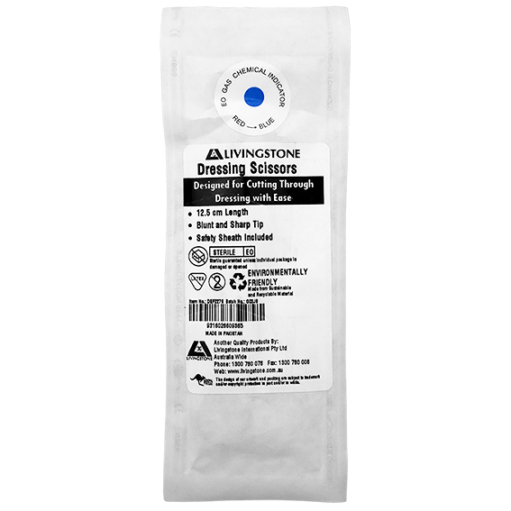Livingstone Dressing Surgical Scissors Sterile 12.5cm Sharp/Blunt Straight Stainless Steel Peel Pack - Silver x70