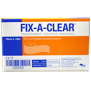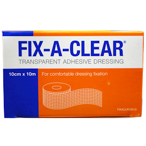 Livingstone Fix-A-Clear Transparent Adhesive Dressing offers discreet and durable fixation for a wide range of wound dressings. Measuring 10cm x 10 metres, this non-sterile dressing tape is designed to prevent blisters and pressure sores while keeping bandages securely in place. Its transparent film supports visual inspection of the dressing area, and the adhesive backing ensures reliable adherence without causing irritation—ideal for patients with sensitive skin. Made with low allergy materials, it promotes comfort and hygiene across clinical, aged care, and home environments. Supplied as a single roll, it’s a practical solution for wound management and dressing stability.