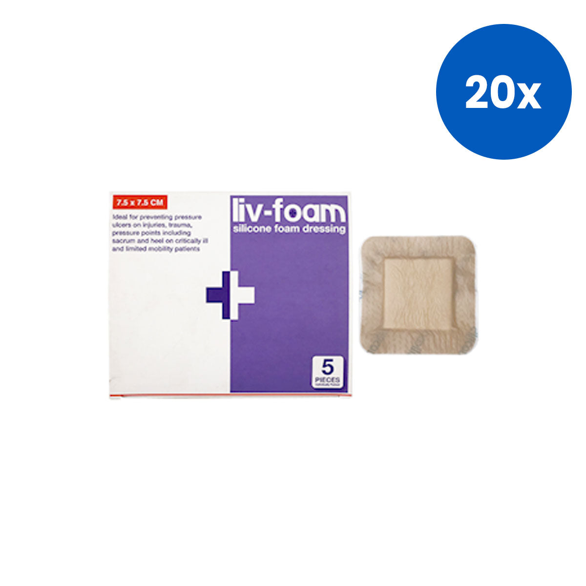 Liv-Foam is an absorbent atraumatic dressing made from polyurethane foam. Suitable for use under compression bandaging. Outer surface of the foam is bonded to a air permeable polyurethane membrane which acts as a barrier to liquid and micro pathogens. Self adherent foam minimises pain and trauma at dressing changes, and does not require secondary fixation. Dressing can remain in place for several days depending on the condition of the wound. Dressing can be lifted and adjusted without losing its adherent properties. Water proof, promotes patient comfort during wear. Silicone reduces risk for skin irritation and allergy. Pad Size: 4.5 x 4.2cm