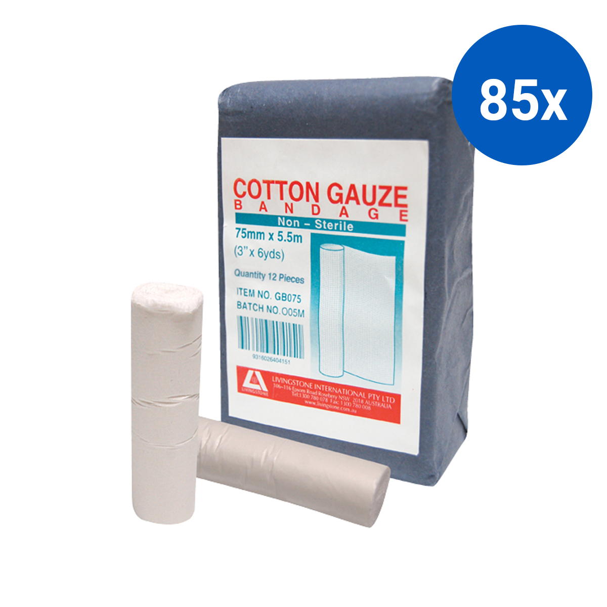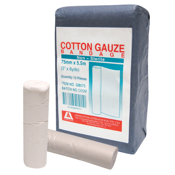 Livingstone Gauze Bandage Wide Open Weave Latex Free 75mm x 5.5m 12/Pack - White x85