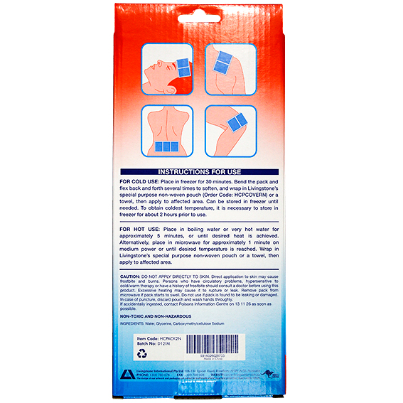 Livingstone Hot & Cold Pack 24.5 x 11.5cm 200g with Pouch Gel 2/Box - Clear x40