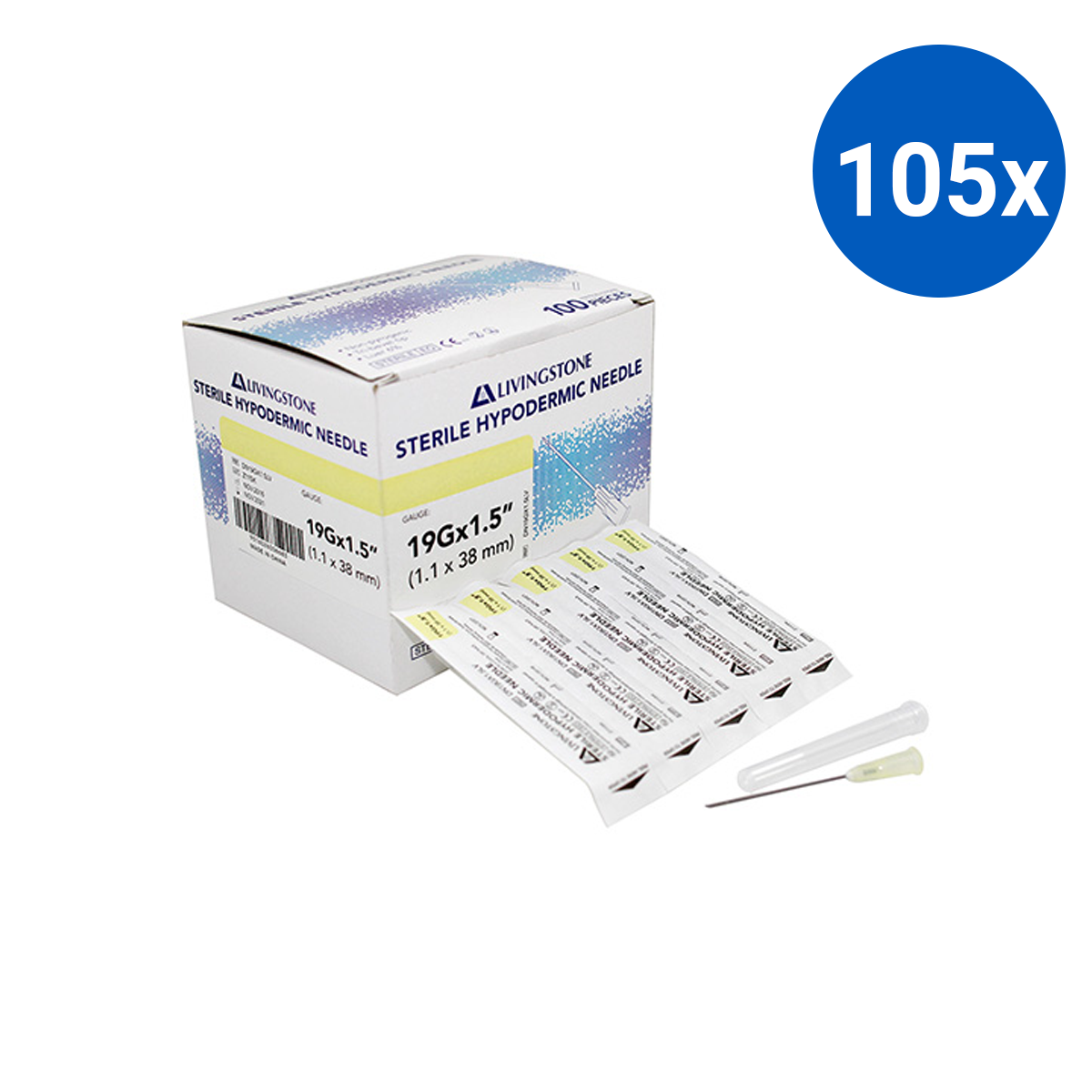 Livingstone Hypodermic Needles 19G (1.1mm) x 1.5" (38mm) 100/Box - Silver x105