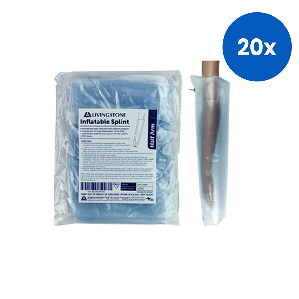 Livingstone Inflatable Splint Half Arm Emergency PVC Immobilizer Lightweight Trauma Support Device - Clear x20