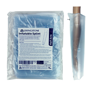 The Livingstone Inflatable Splint for Half Arm is a fast-to-deploy medical device designed to immobilize and protect injured limbs in emergency and trauma care scenarios. Constructed from durable medical-grade PVC, this semi-transparent splint wraps securely around the forearm, providing effective stabilization while minimizing patient discomfort during transport or initial treatment.