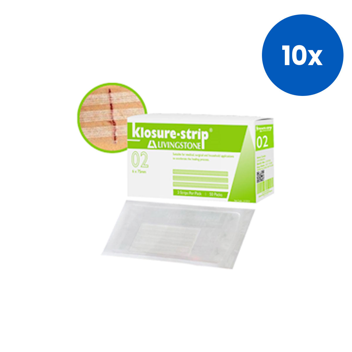 Livingstone Klosure-Strip Reinforced Wound Skin Closure Strips No. 02 6 x 75mm 3 Strips/Pack 50 Packs/Box - Clear x10