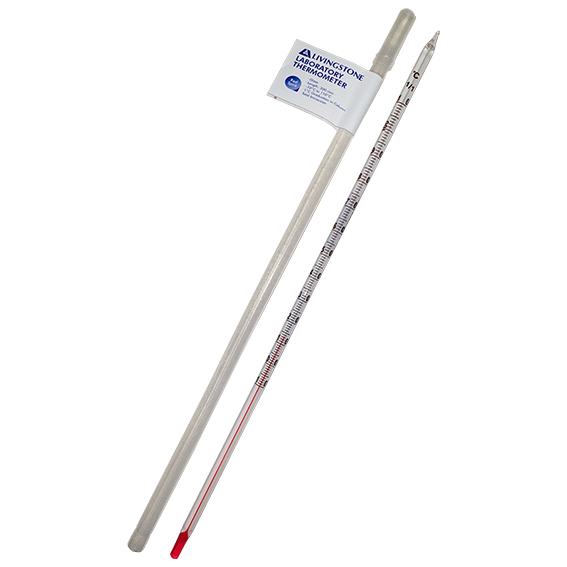 Livingstone Laboratory Thermometer Red Spirit -10 to 110degC 1.0deg Division - White x45