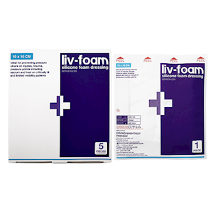 The Livingstone Liv-Foam Silicone Foam Adherent Dressing provides gentle yet secure coverage for wound care applications. Measuring 10 x 10cm and designed without borders, it enhances flexibility and conforms easily to the body’s contours, making it suitable for sensitive or irregular skin surfaces. The silicone adhesive layer ensures non-traumatic removal and minimizes pain during dressing changes, while maintaining optimal moisture balance to support healing. Highly absorbent foam material protects against exudate buildup and external contamination. Packaged with 5 sterile dressings per box, it’s ideal for clinical settings requiring reliable, skin-friendly wound management.