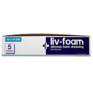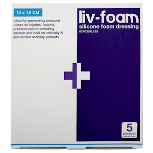 Livingstone Liv-Foam Silicone Foam Adherent Dressing 10 x 10cm Borderless 5 Pieces/Box - Brown x15