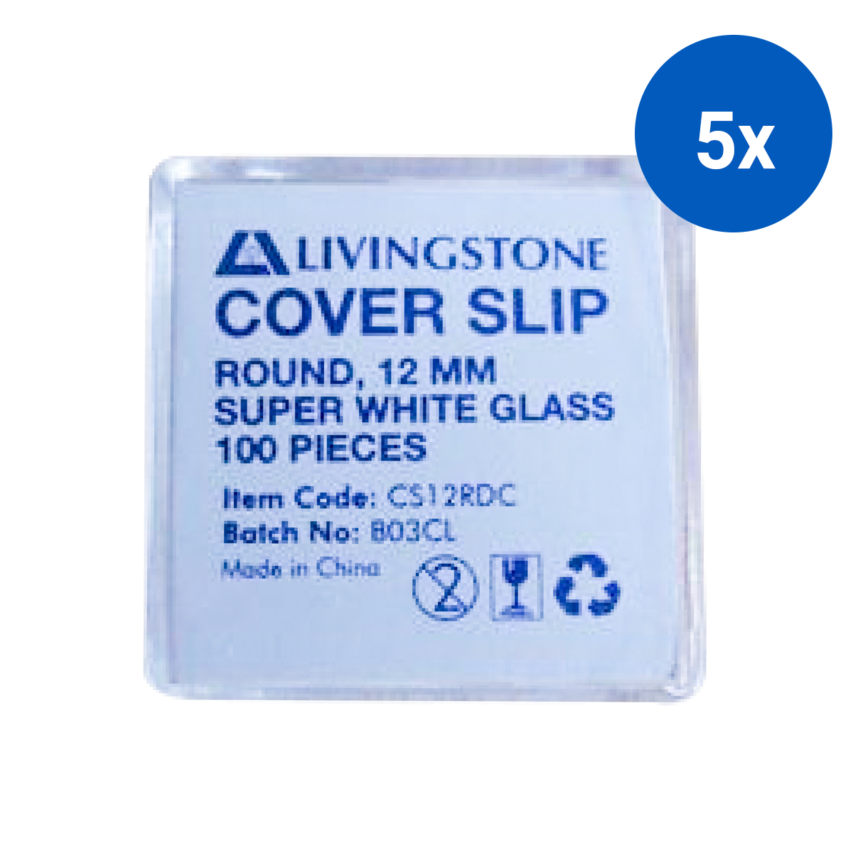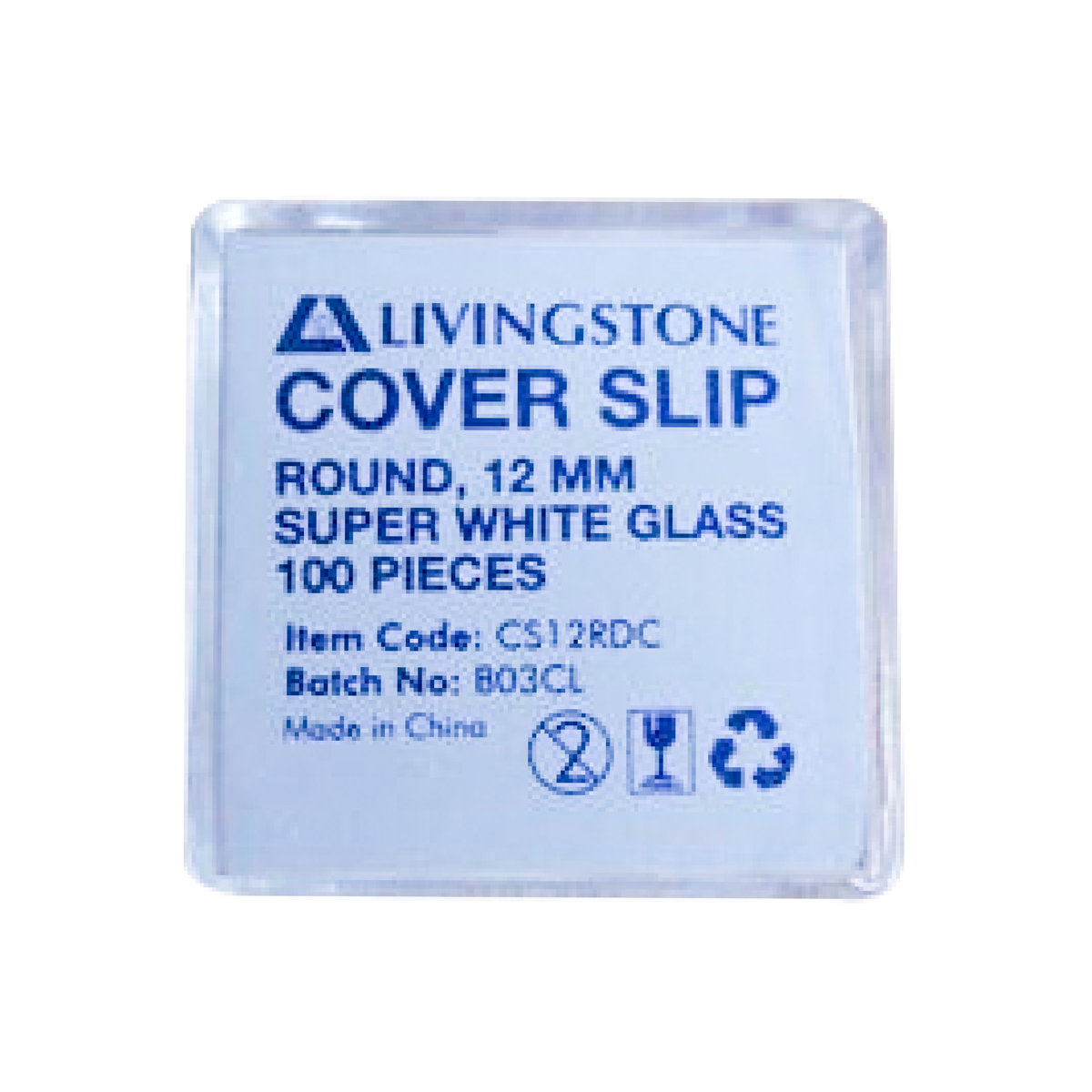 Livingstone Cover Slip, Round, Super White Glass, 12 mm Diameter, Size 1, Thickness 0.13-0.16mm, 100 per Pack, 10 Packs per Box.