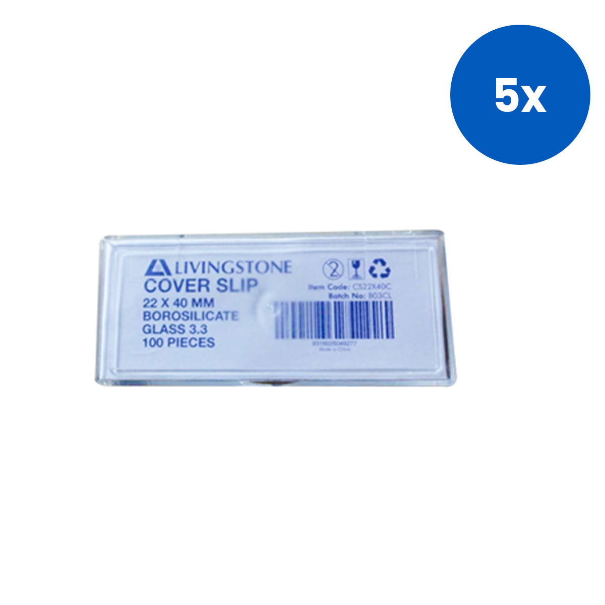 Livingstone Microscope Cover Slip 22 x 40mm 0.13-0.16mm Thickness 100 Pieces/Pack 1000 Pieces/Box - White x5