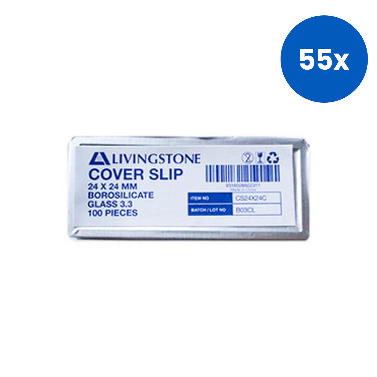Livingstone Microscope Cover Slip 24 x 24mm No. 1 Borosilicate 3.3 Glass 100 Pieces/Pack - White x55