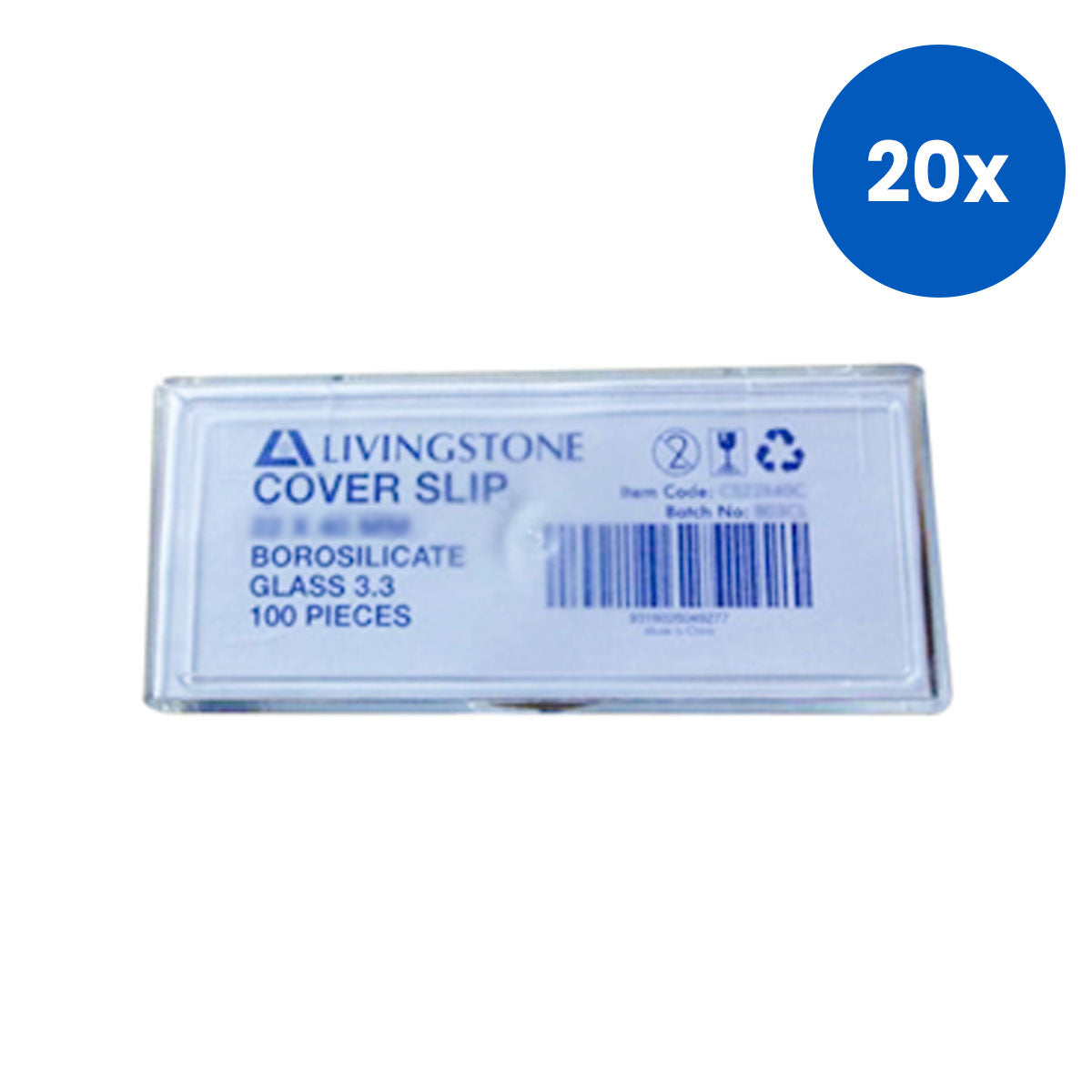 Livingstone Microscope Cover Slip 24 x 60mm No. 1 Borosilicate 3.3 Glass 100 Pieces/Pack - White x20