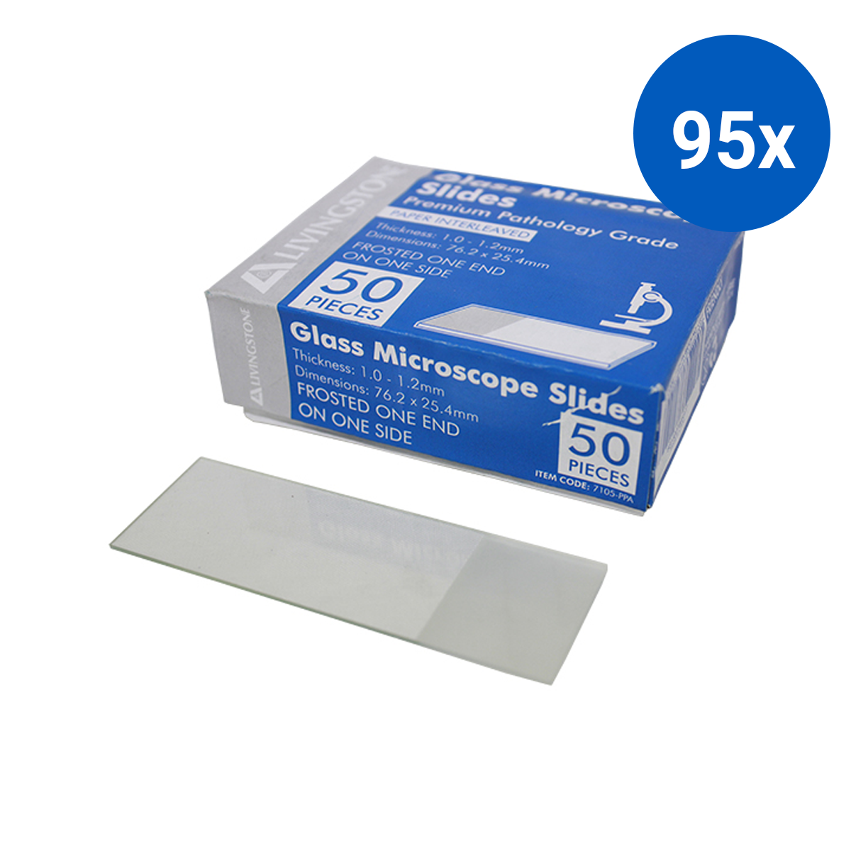 Livingstone Microscope Glass Slide Frosted One End One Side Thickness 1.0-1.2mm 76.2x25.4mm 50/Pack - White x95
