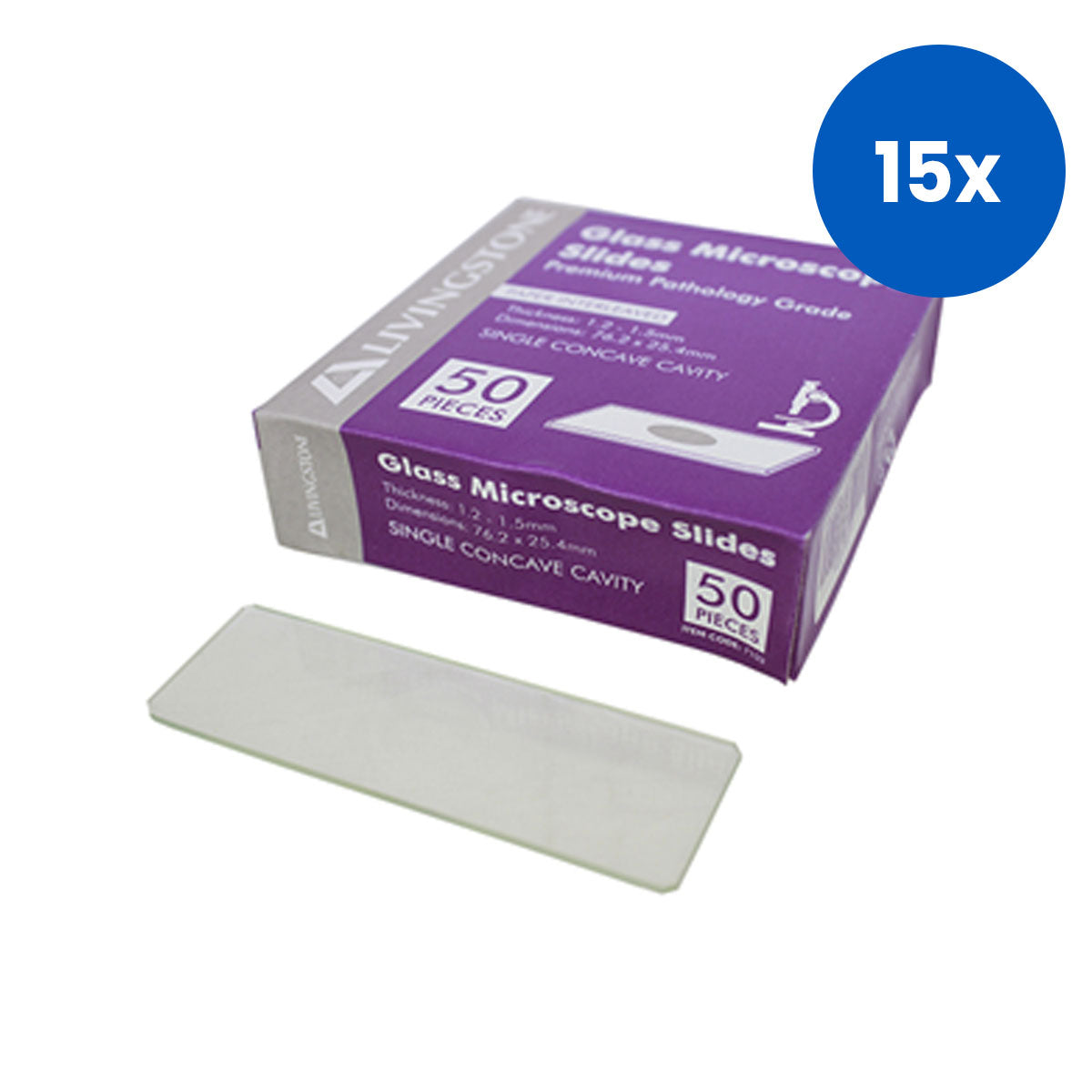 Livingstone Microscope Glass Slide Single Concave Cavity 1.2-1.5mm Thick Pathology Grade Interleaved 50/Pack - Clear x15
