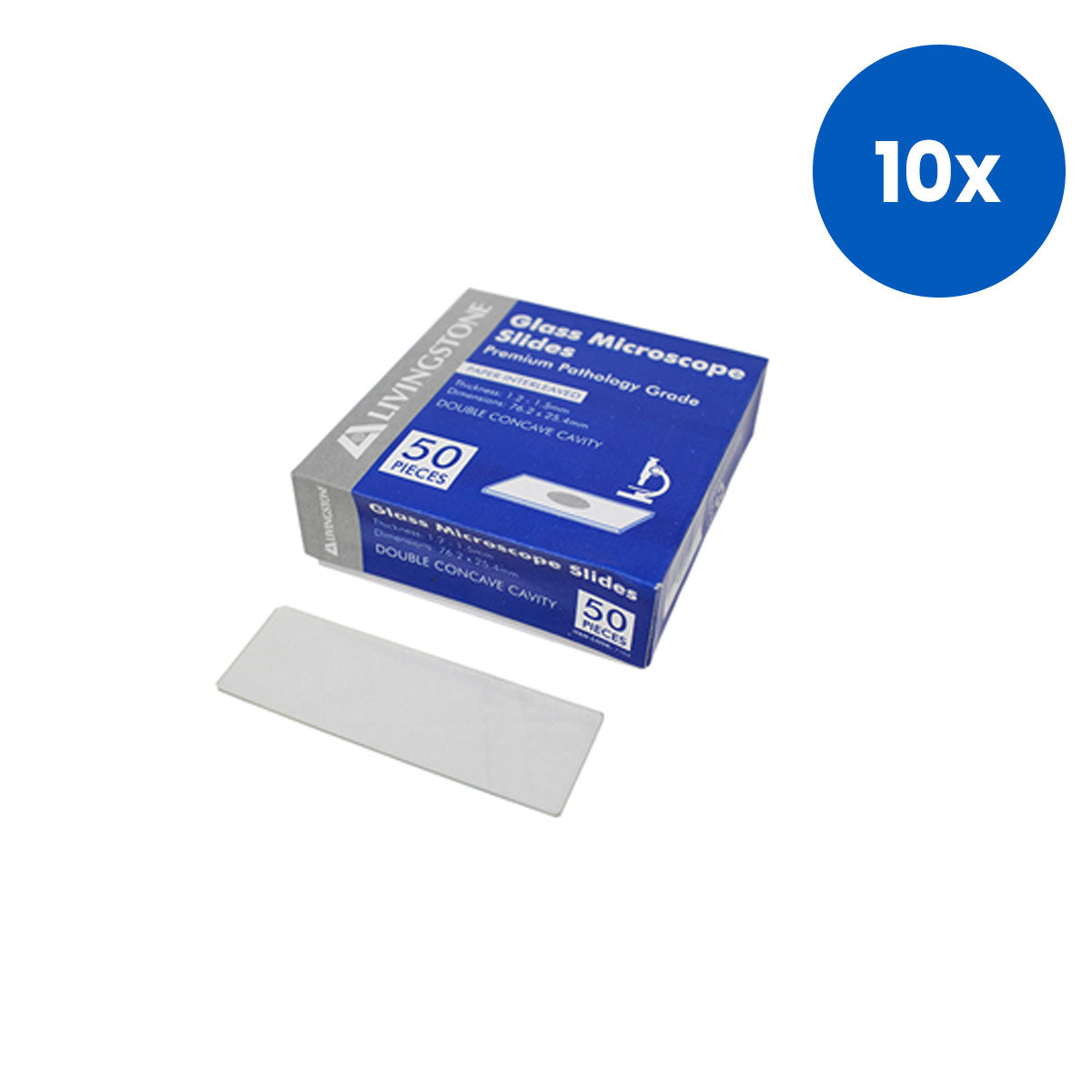 Livingstone Microscope Glass Slide with Double Concave Cavity 50/Pack - White x10