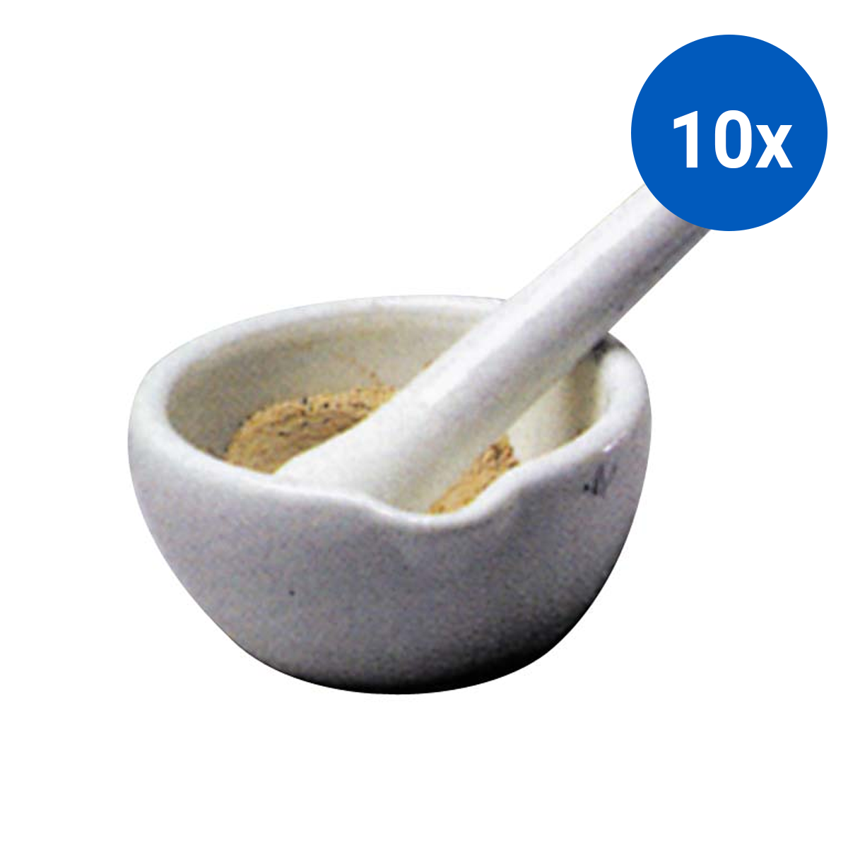 These fine mortar and pestle sets are great for general laboratory use. Glazed outside except for bottom; rough inside. Pestle is glazed on its handle and rough on opposite end. A great tool for pharmaceutical applications. Livingstone brand.