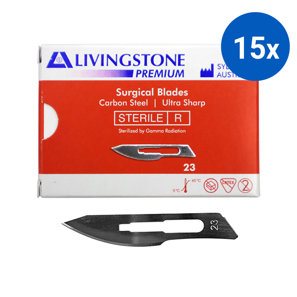 Livingstone Premium Surgical Scalpel Blade Carbon Steel Size 23 Sterile 100 Pcs/Box - Clear x15