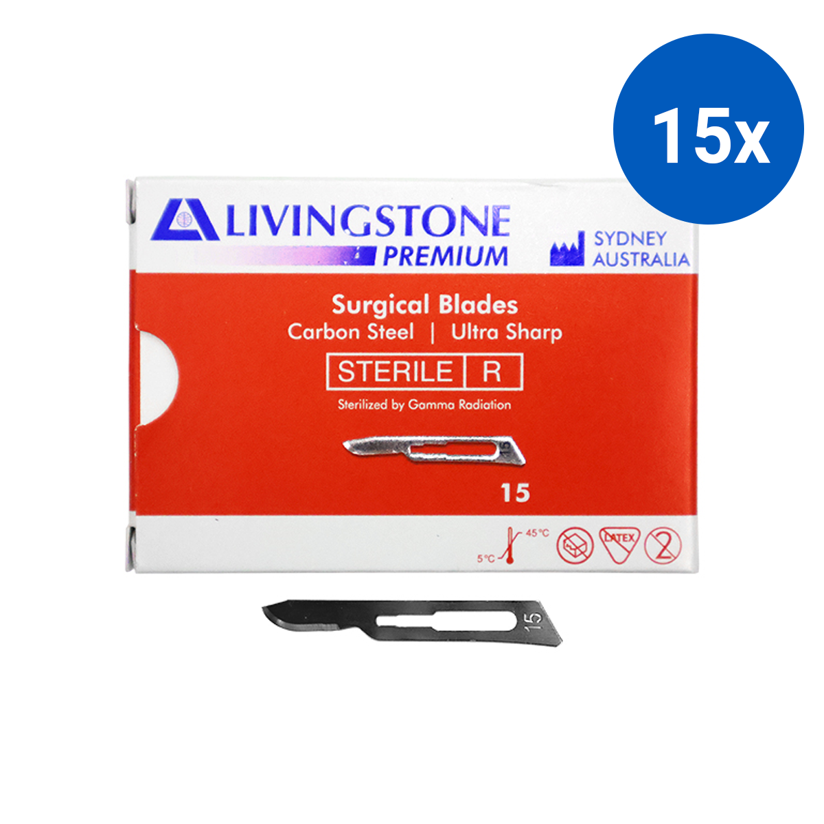 Livingstone Premium Surgical Scalpel Blade Size 15 Sterile 100 Pcs/Box - Silver x15