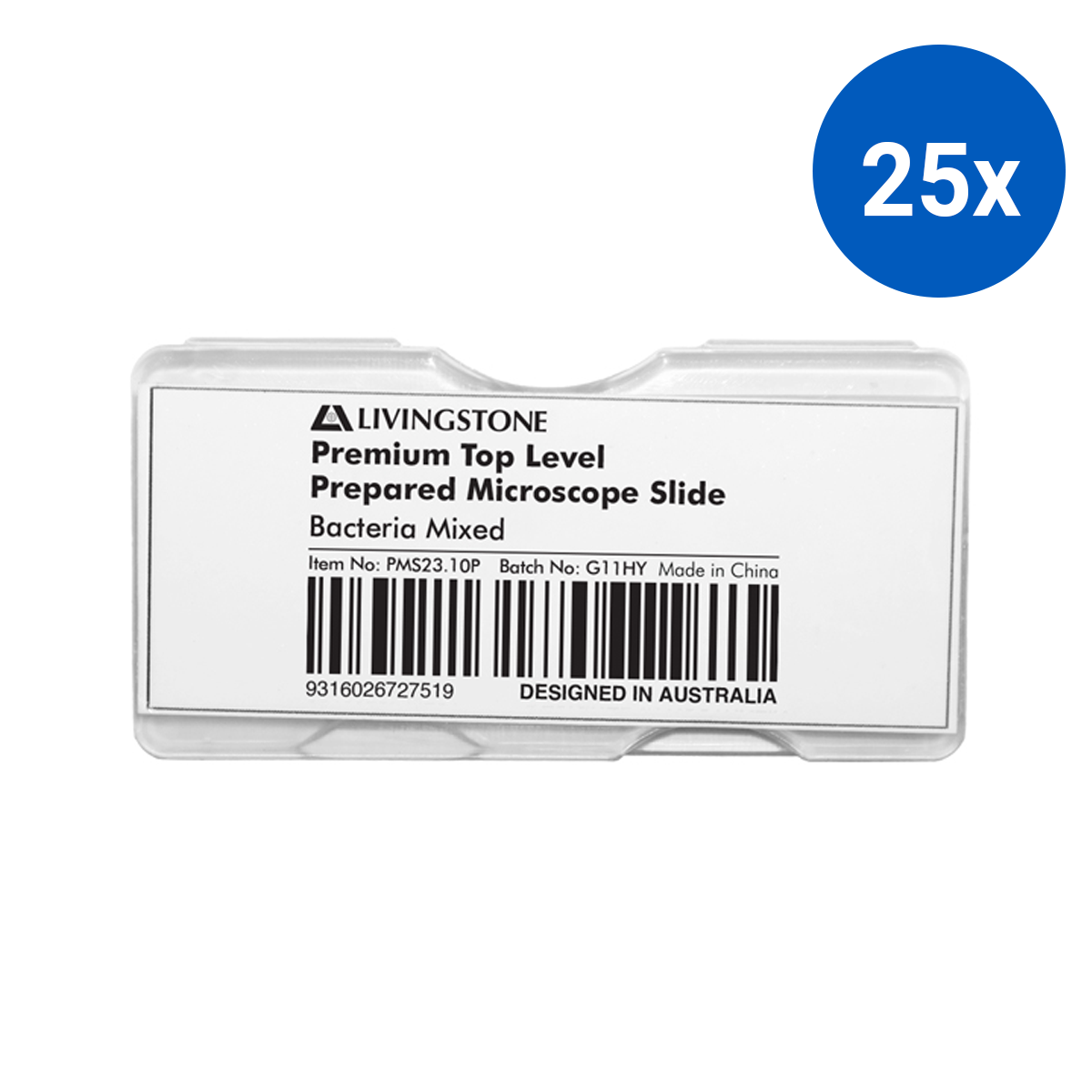 Livingstone Premium Top Level Prepared Slide Bacteria Mixed - Clear x25