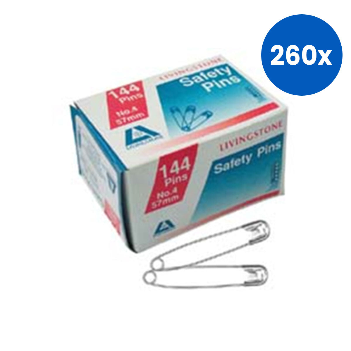 Livingstone Safety Pins No.4 59mm 12 Pins/Pack - White x260
