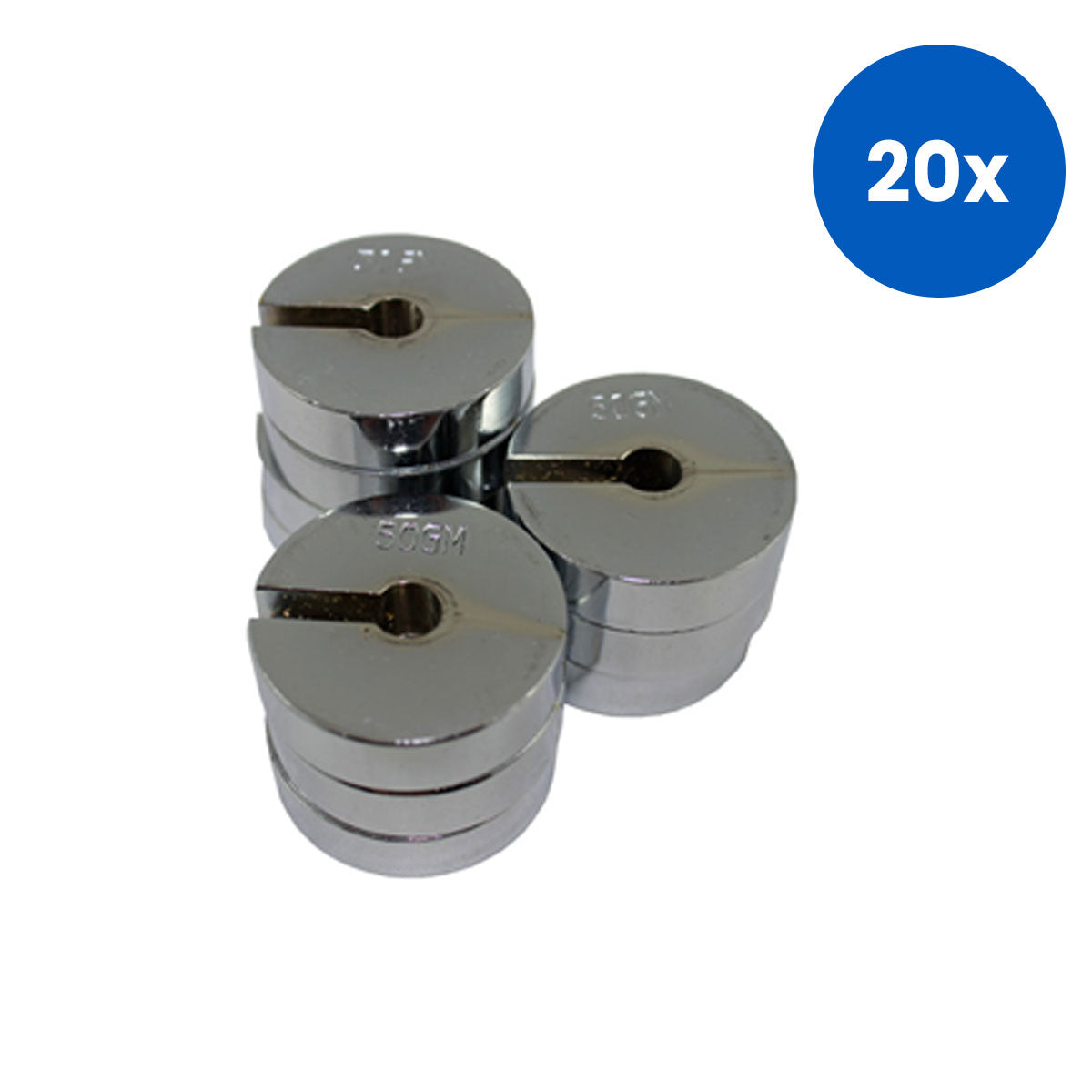 Livingstone Slotted Mass Weight Stainless Steel 50 Grams 6mm Core Diameter 10/Pack - Grey x20