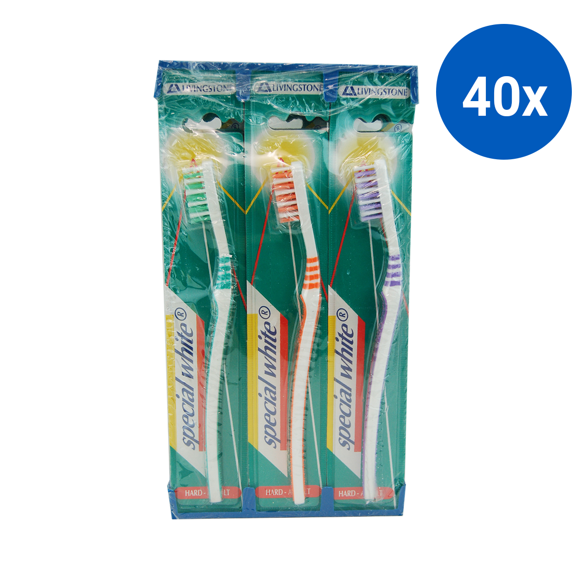 Livingstone Special White Toothbrush Adult Hard DuPont Bristles 12/Pack - Assorted Colors x40