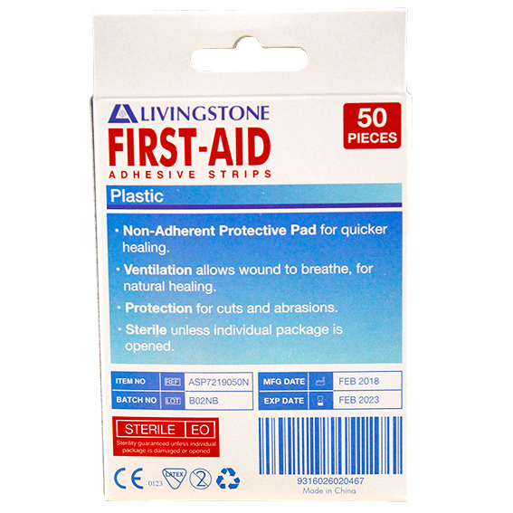 Livingstone Highly absorbent waterproof non-stick plastic strips that assist in protecting wounds. Easy removal without opening the wounds. For minor wounds, cuts, and grazes.