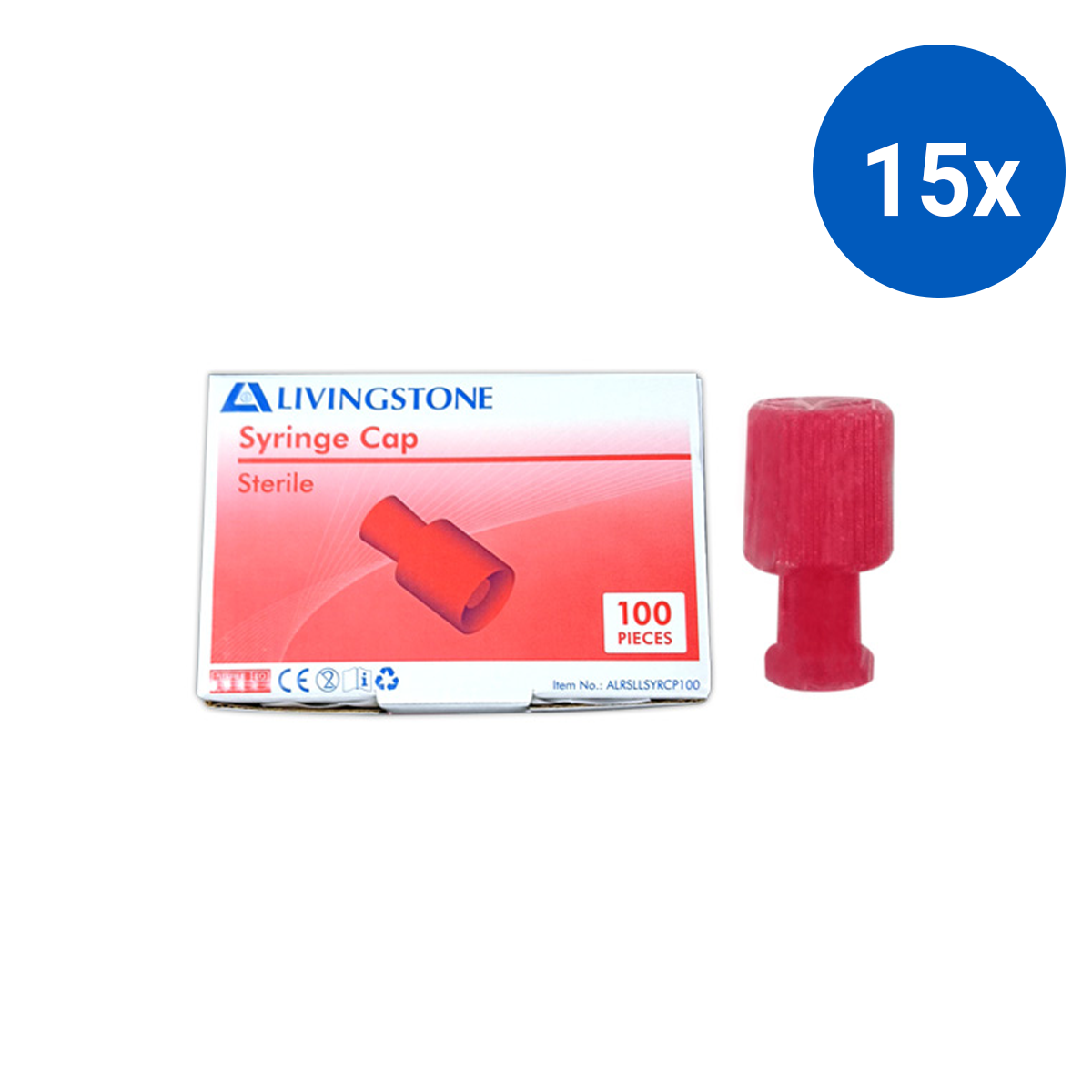 Livingstone Syringe Nozzle Closure Tip Cap Sterile 100/Box - Red x15