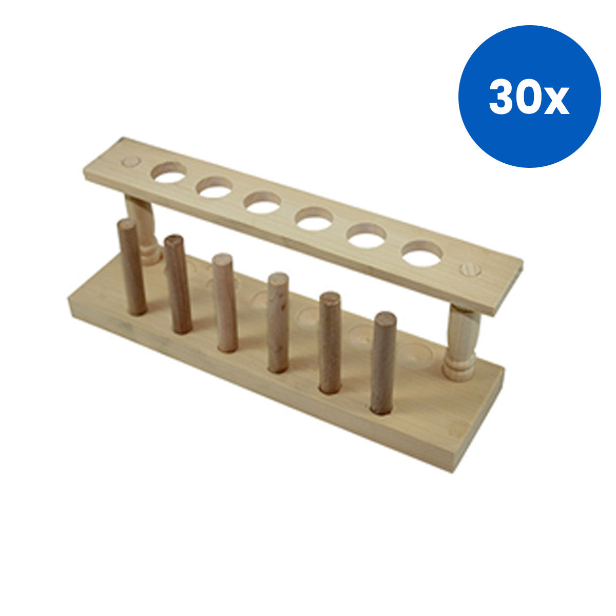Livingstone Test Tube Rack Stand Biodegradable Wood 20mm Test Tube 6 Holes with 6 Pegs - Brown x30 Varnished
