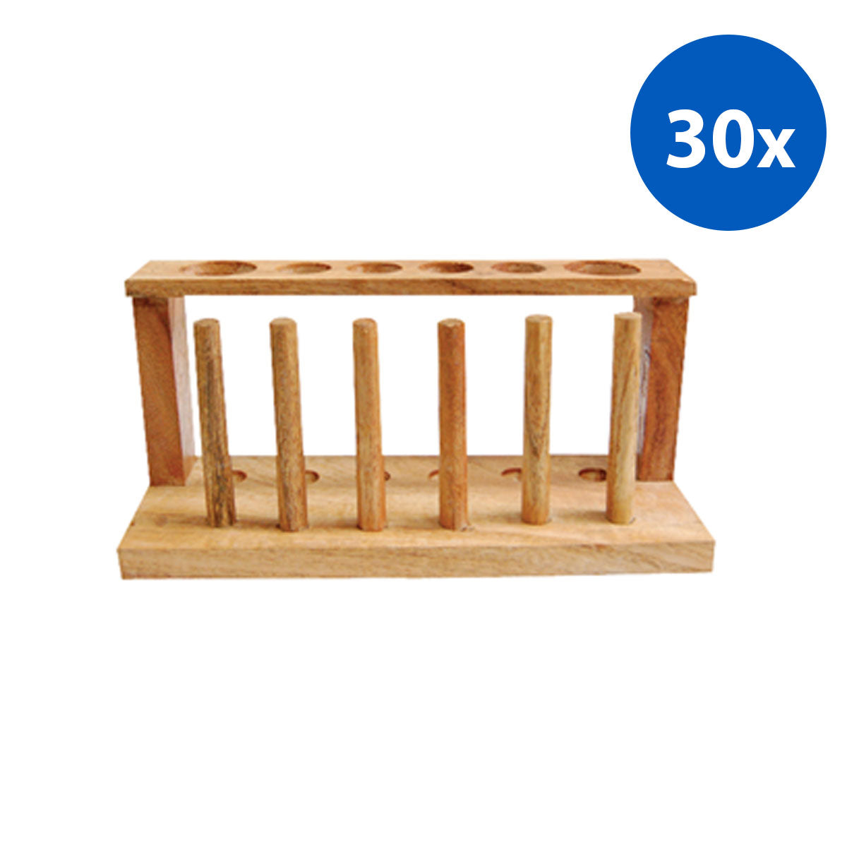 Livingstone Test Tube Rack Stand, Biodegradable Wood, 6 Holes with Pegs, 24mm 2 Outer Holes and 19mm 4 Inner Holes Test Tube Diameter.