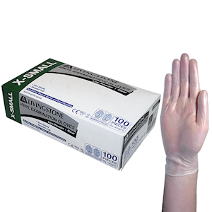 Livingstone Vinyl Exam Gloves 5.0g Extra Small Low Powder Recyclable Disposable Medical Use 100/Pack - Clear x60