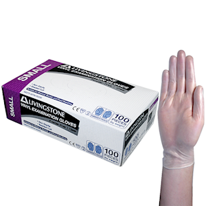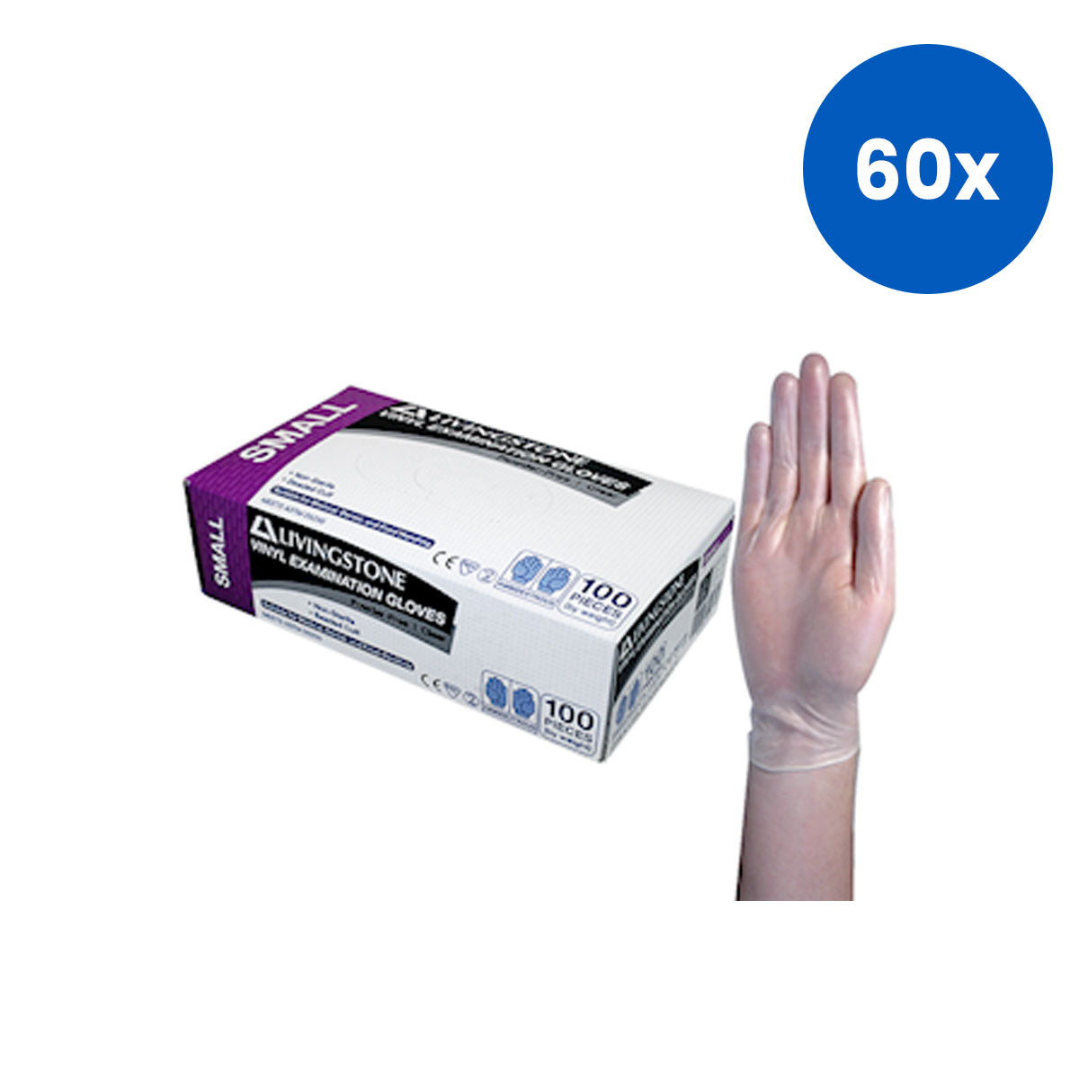 Livingstone Vinyl Examination Gloves Small 5.5g ASTM Standard Recyclable 100/Box - Clear x60