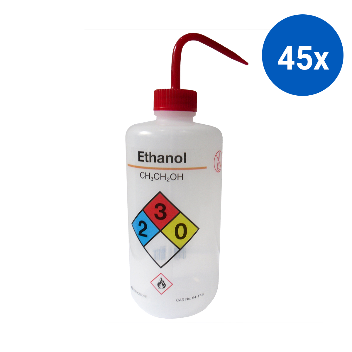 Livingstone Wash Bottle 500ml Labelled Ethyl Alcohol Recyclable LDPE - White x45