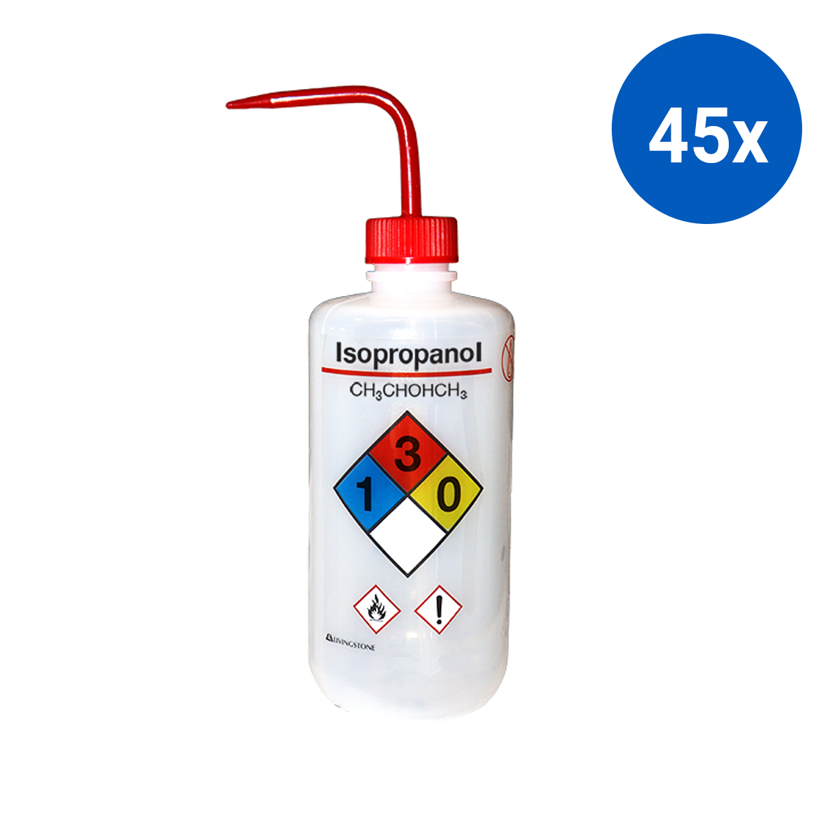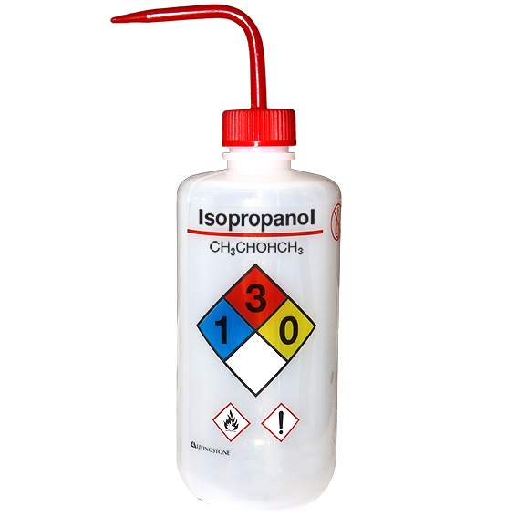 Livingstone Wash Bottle 500ml Labelled Isopropanol Recyclable LDPE - White x45