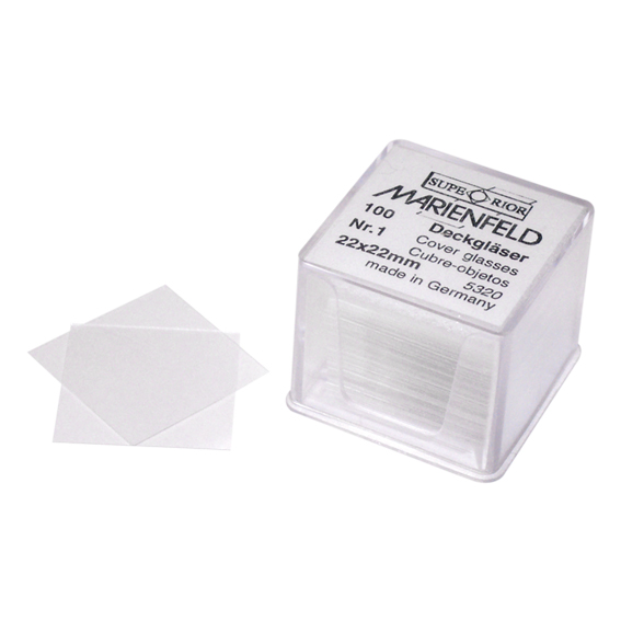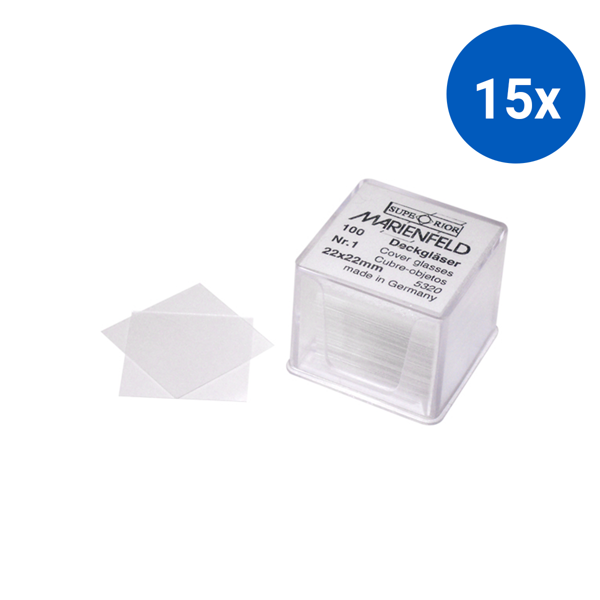 Marienfield Cover Slip 22 x 22mm No. 0 Thickness Borosilicate 3.3 Glass 233/Ounce Germany - Clear x15