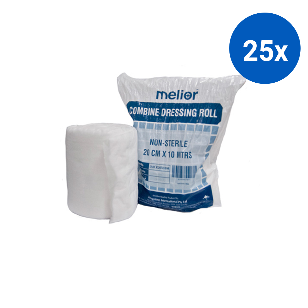 Melior Combine Dressing Roll 20cm x 10m Nonwoven Non-Sterile 1 Roll/Bag - White x25
