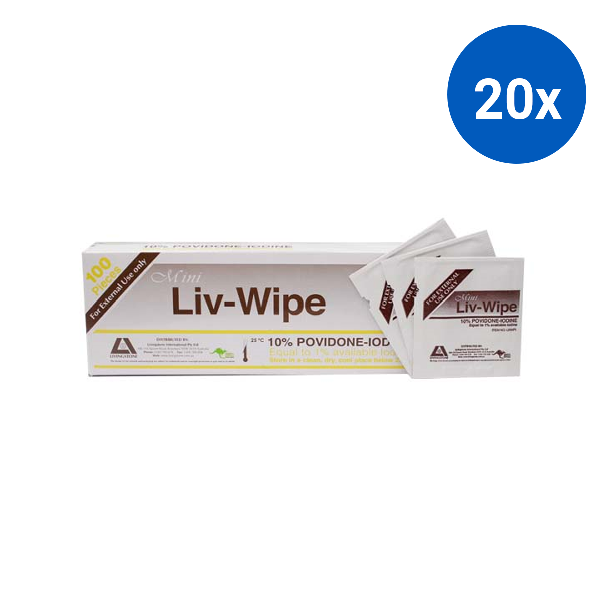 Mini Liv-Wipe 10% Povidone Iodine Wipes 55 x 50mm 100/Box - White x20