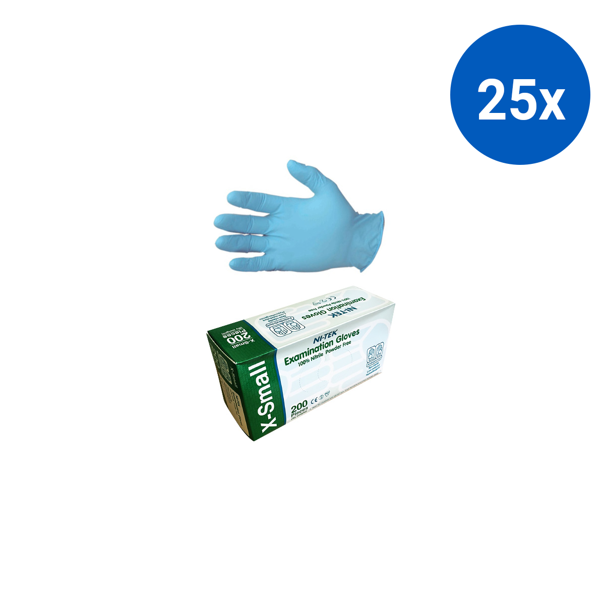 Ni-Tek Nitrile Gloves AS NZ Standard Powder Free EN374 Extra Small 200/Box - Blue x25