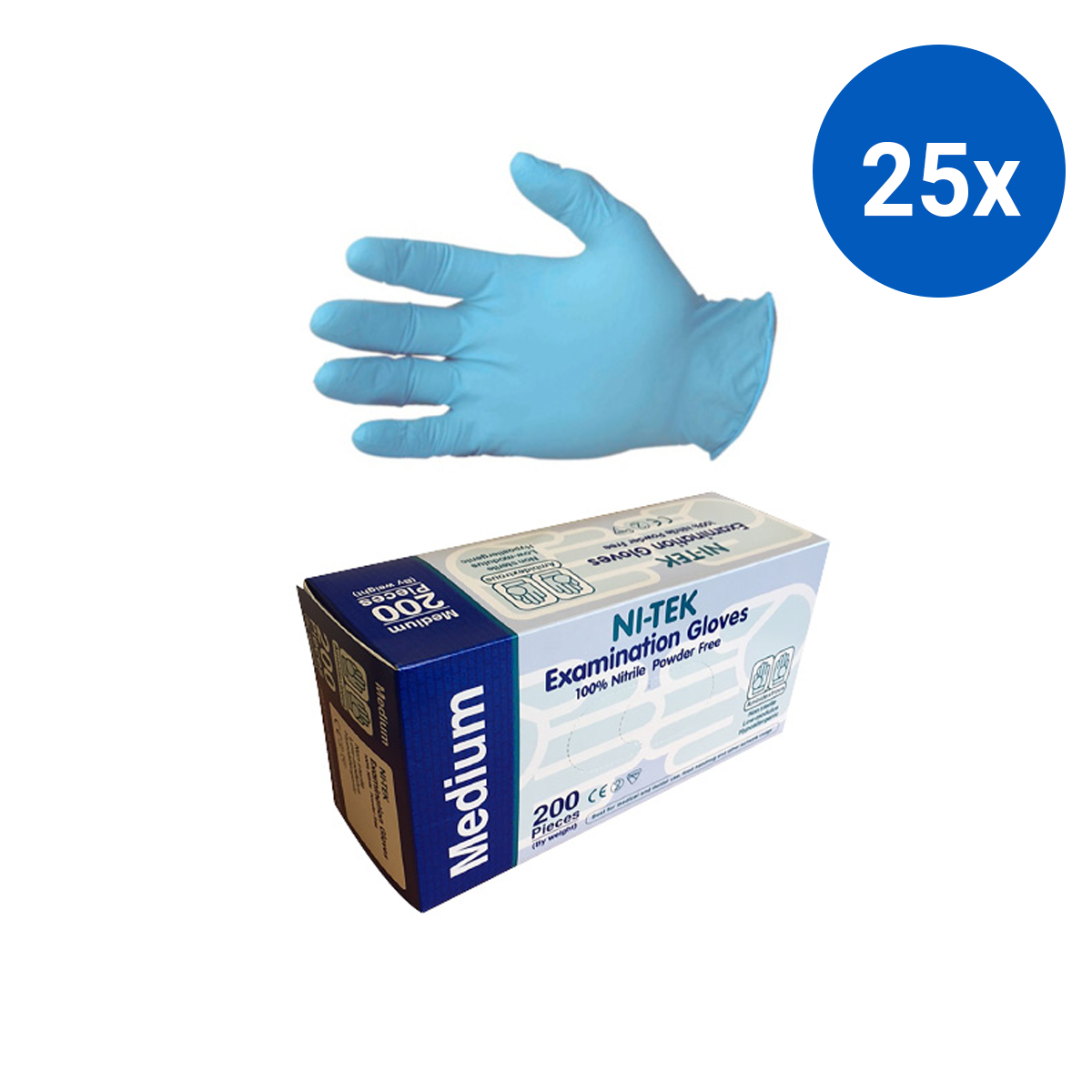 Ni-Tek Nitrile Gloves AS NZ Standard Powder Free EN374 Medium 200/Box - Blue x25