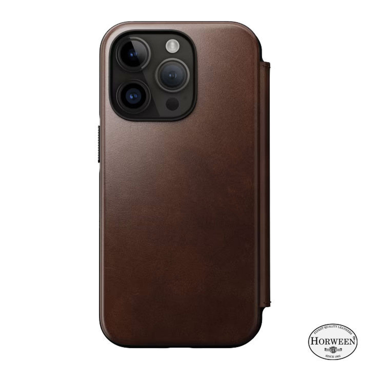 Quality, character, tradition. Nomad Modern Horween Leather Folio iPhone 15 Pro Max - Rustic Brown is for the leather fanatics. Built with our heritage vegetable tanned Horween leather, Modern Leather Folio stylishly elevates the look and feel of your iPhone while offering rugged protection and storage for your cash and cards.