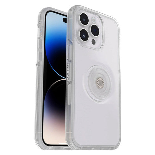 The OtterBox Otter+Pop Symmetry Clear Case iPhone 14 Pro - Clear provides added protection against drops, bumps and shock